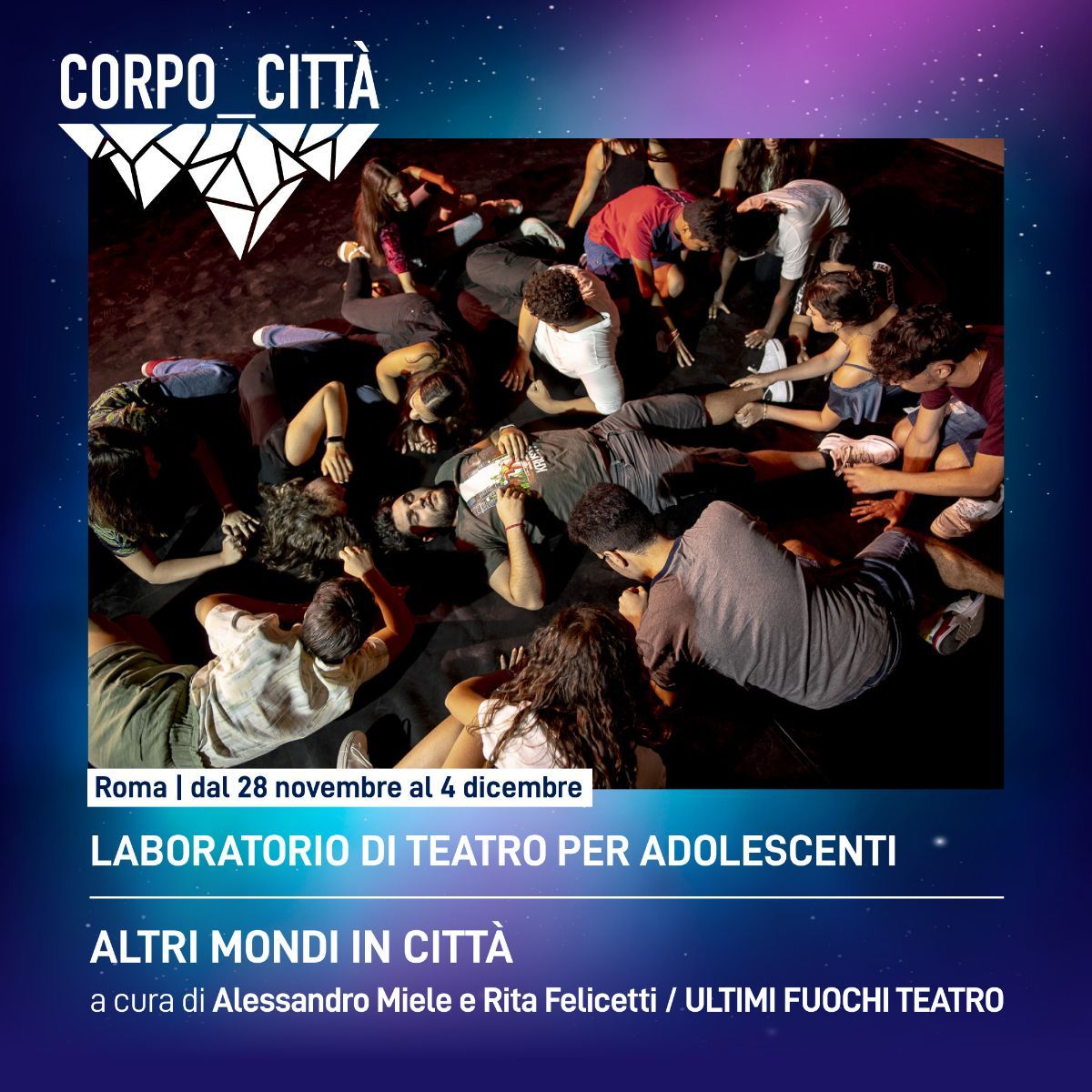 Il progetto Corpo_Città promuove forme di sperimentazione nell’ambito delle arti performative contemporanee con una grande attenzione alle espressioni /espansioni crossdisciplinari e ai formati innovativi che prevedono il coinvolgimento dei cittadin_ con un particolare focus sugl_ adolescenti e gl_ Under 35.