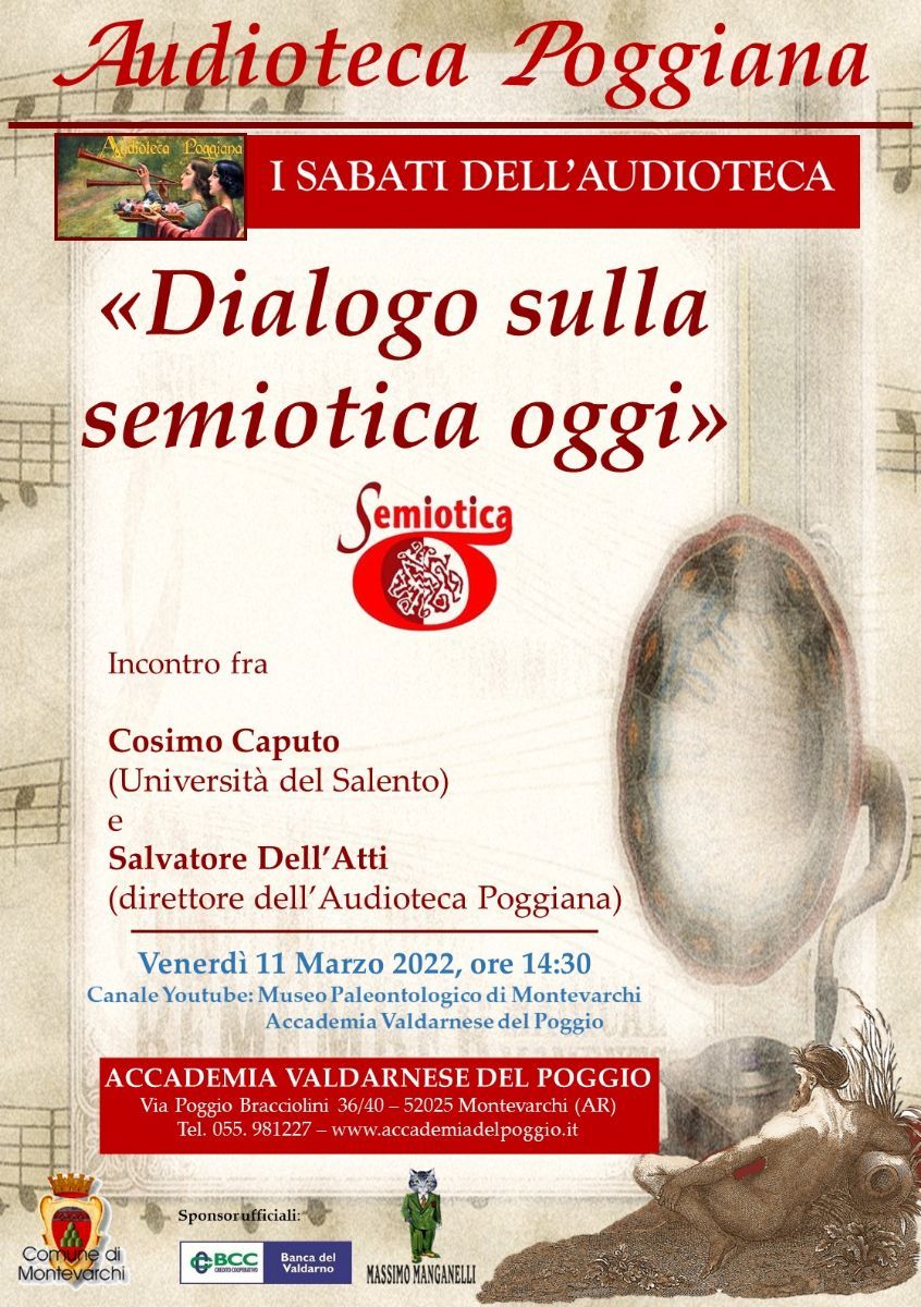 L’incontro con il prof. Cosimo Caputo, che si svolgerà sotto forma di dialogo con il direttore dell’Audioteca Poggiana Salvatore Dell’Atti, intende offrire, attraverso la ricerca dello studioso, spunti di riflessione su questo spazio disciplinare ineludibile nell’odierna società della comunicazione