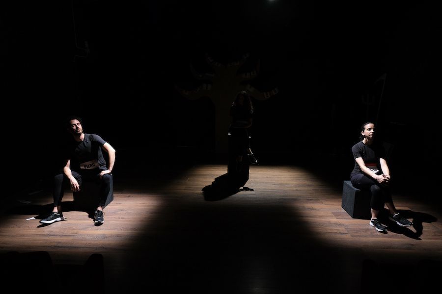 Questa è l’idea che ha guidato la messa in scena dello spettacolo: i personaggi come maratoneti, corridori senza volto che solcano le strade della vita. Le loro identità sono fugaci, effimere: etichette che ci appiccichiamo addosso senza sapere perchè, abbandonate nel magazzino di ruoli creato della società contemporanea, in cui tutti possono essere tutto e finiscono, paradossalmente, per non essere niente.
