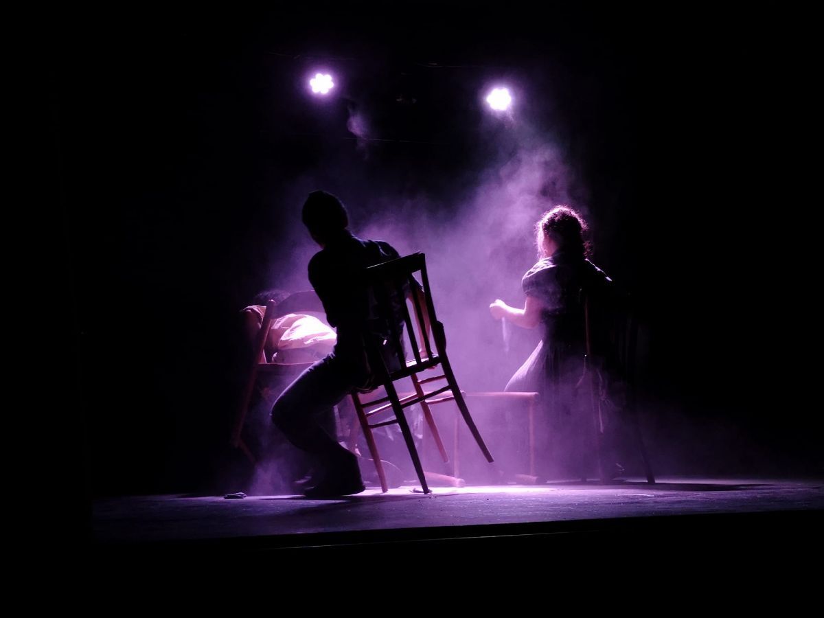 In scena solo quattro sedie che si trasformano sotto le mani dei personaggi in differenti scenari.